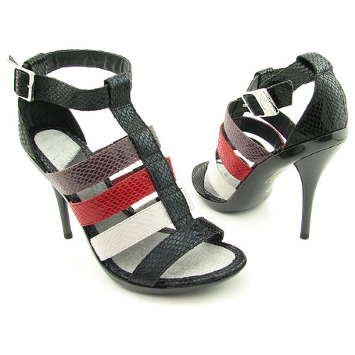 Sade by Baby Phat. Featuring all man made material, multicolor strap, 4.5 inch heel, and crocodile print.