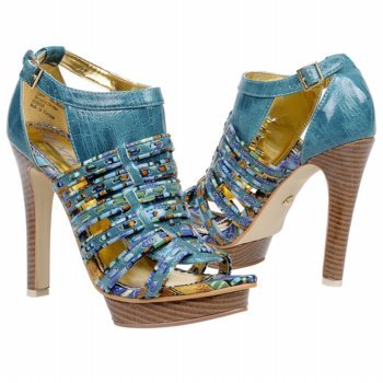 Warm, friendly, and fashionably chic is the message you'll send with these Torch sandals from Dereon. Soft, faux leather and fabric upper in a heeled, dress sandal style with an almond, open toe. Neatly patterned vamp straps. Faux metallic leather and fabric lining with a cushioning footbed. 3/4 inch, faux stacked platform midsole. Smooth outsole. 4 1/2 inch faux stacked heel.