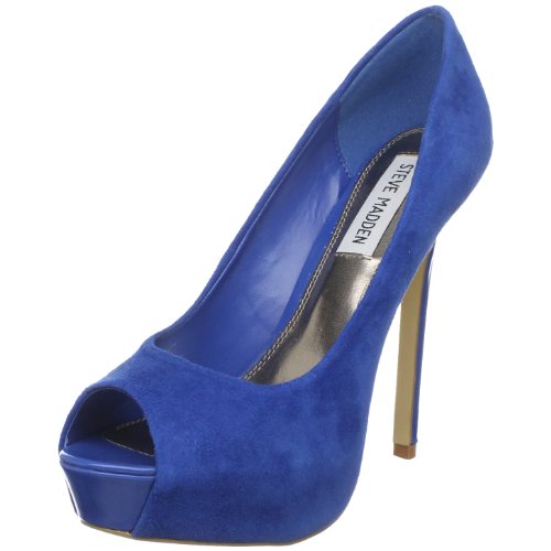 You're stylish and oh-so-sexy in the Scandall pump from Steve Madden. This seductive suede shoe features a formidable platform and towering stiletto for an alluring lift. A peep toe offers a glimpse of a pretty pedicure and a metallic lining adds a dash of shine. This shoe sizzles with a little black dress and spices up skinny jeans.