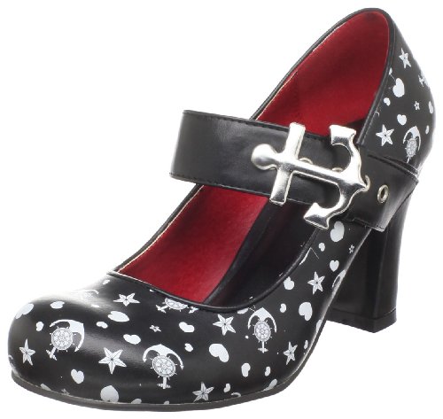 Let your divine style sail with this adorable mary jane from T.U.K. Totally girly but far from frilly, this pump has a tattoo-inspired print topped with a pretty and polished anchor, while the thick heel delivers nothing but a sexy and sturdy lift.