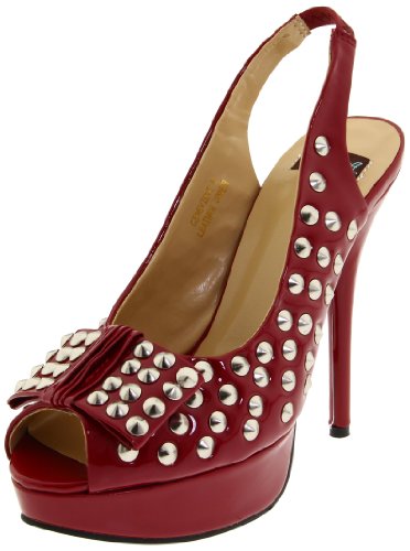 N.Y.L.A. gives you the perfect pump for your rocker look with the Genevieve. Polished studs add edge while a prim bow keeps it girlish. Killer lift makes this a great pair with a daring mini-dress or even a fierce finish with some shorts and a punkish tee.